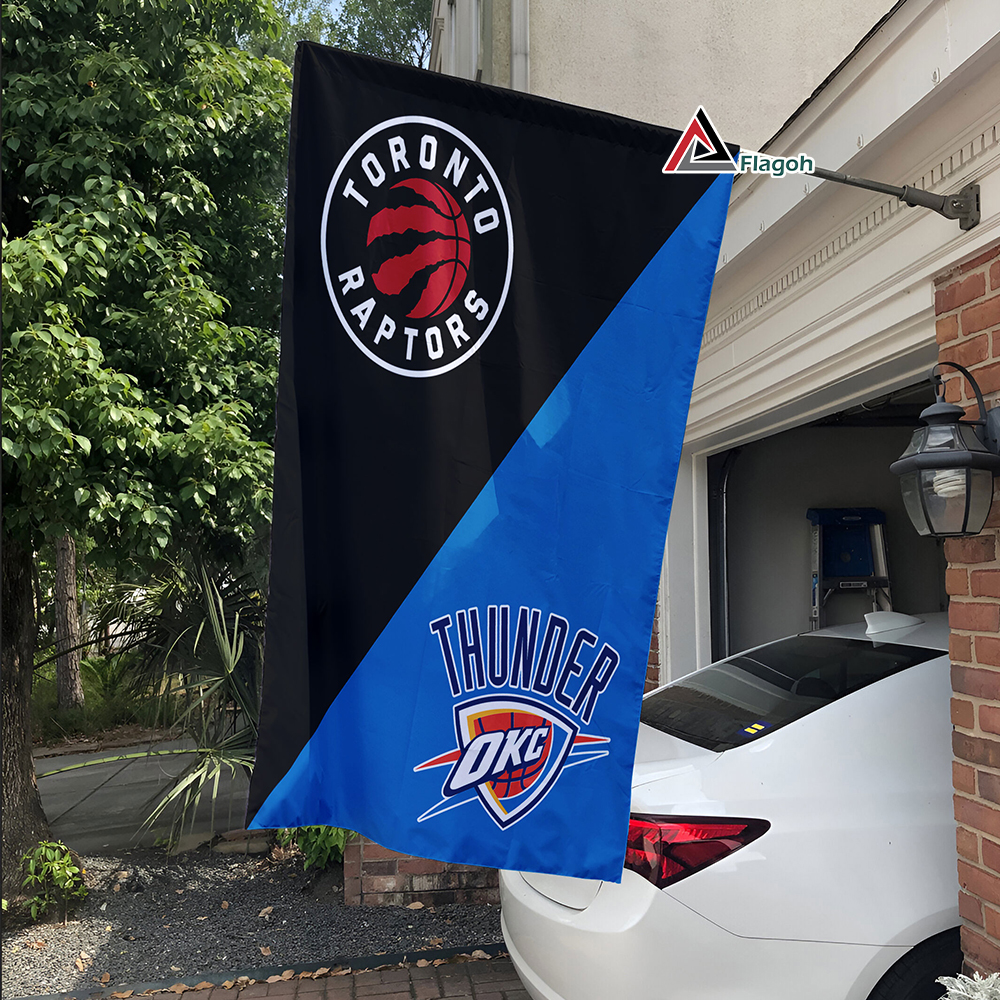 Settle debates between Raptors and Thunder fans with this house divided flag! The Raptors vs Thunder House Divided Flag meaning: shows support for both teams at once. The iconic logos fly side by side to unite rival fans.