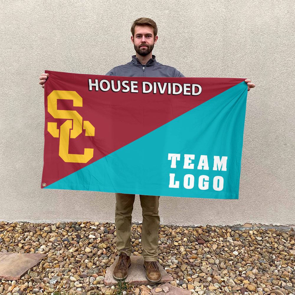 Trojans vs Custom Team House Divided Flag for Ultimate Fan Rivalry