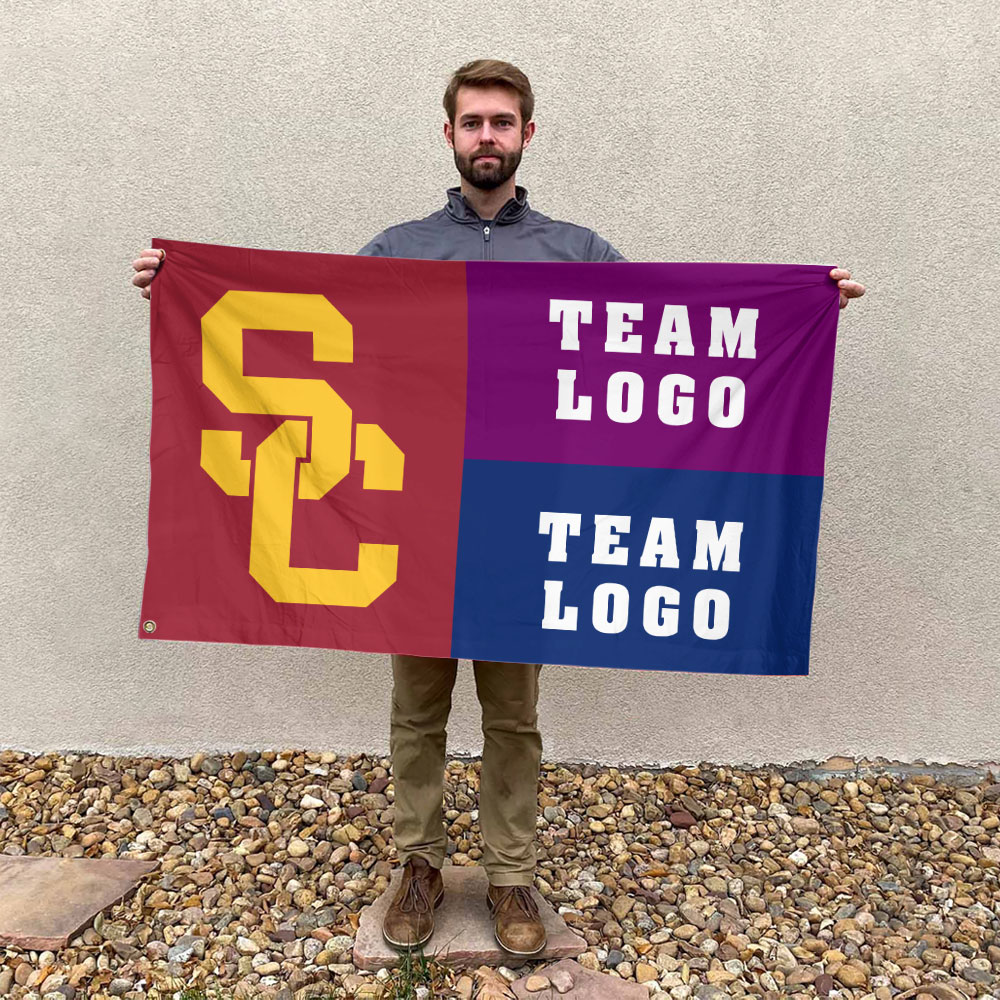 Trojans vs Custom Team House Divided Flag for NCAA Game Day