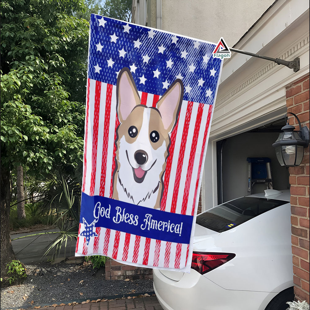 USA God Bless America Corgi Garden Flag, Patriotic Corgi Dog Breed Flag, American Flag for Corgi Lover