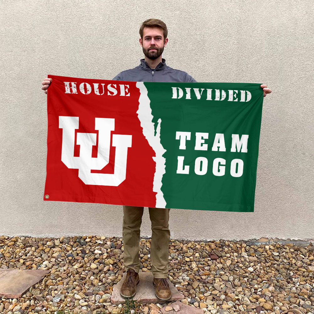 Utes vs Custom Team House Divided Flag NCAA House Flag