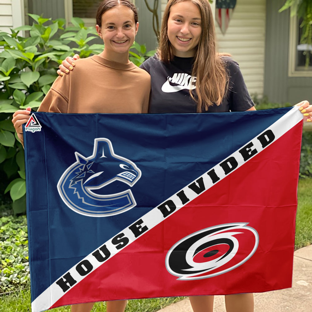 Vancouver Canucks vs Carolina Hurricanes House Divided Flag, NHL House Divided Flag