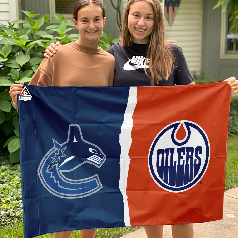 Vancouver Canucks vs Edmonton Oilers House Divided Flag, NHL House Divided Flag