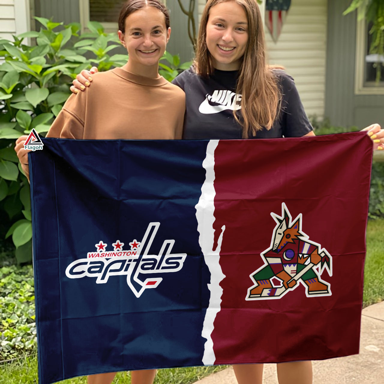 From the halls of power to the scorching desert! Torn between the Washington Capitals’ championship pedigree and the Arizona Coyotes’ rising stars? This House Divided Flag is the answer. One side features the iconic red Capitals logo with its stars and stripes, a symbol of their fight for glory. Flip it over, and the Kachina logo of the Coyotes emerges, a reminder of their unwavering desert spirit. Made from durable polyester, this flag can withstand the heat of competition throughout the season. Hang it proudly in your man cave, game room, or ignite the rivalry outside – a playful reminder that hockey fandom can be as historic as the Capitals’ legacy or as fierce as the desert wind.