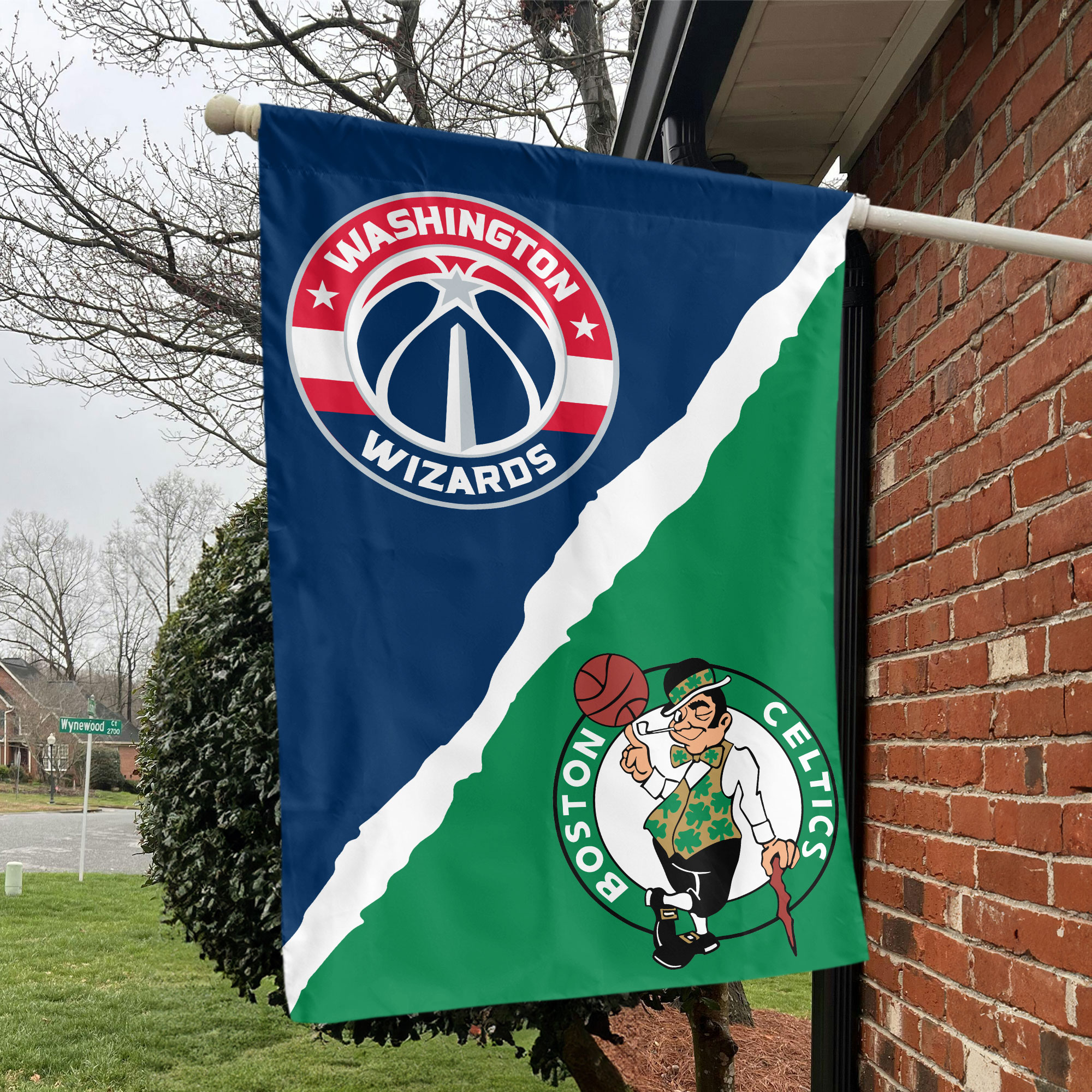 Show your unwavering support for your favorite NBA teams with the Washington vs Boston House Divided Flag. This exclusive NBA House Divided Flag perfectly captures the spirit of friendly rivalry, allowing fans to celebrate their allegiance to both the Washington Wizards and the Boston Celtics. Crafted with premium materials, this flag is designed to withstand the elements and proudly display your passion for basketball all year round.