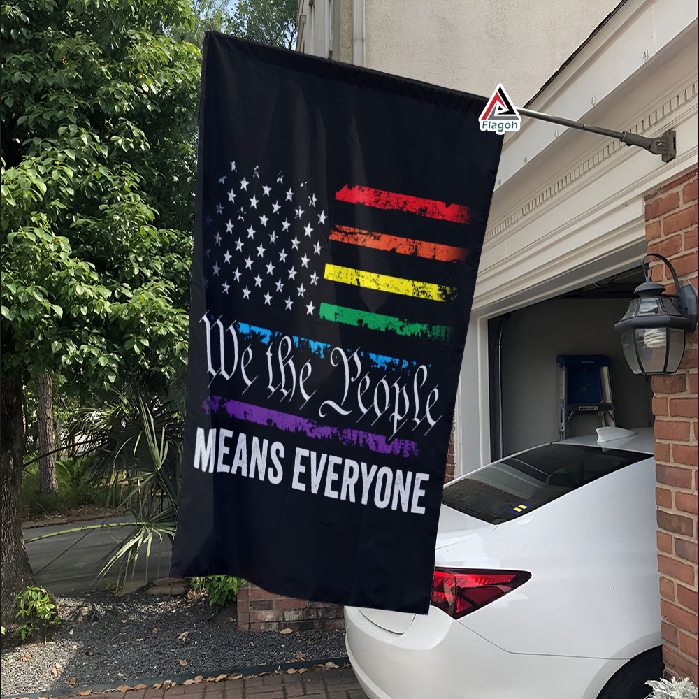 We The People Means Everyone Flag, LGBTQIA+ Pride Flag for 4th of July, Independence Day Outdoor Banner