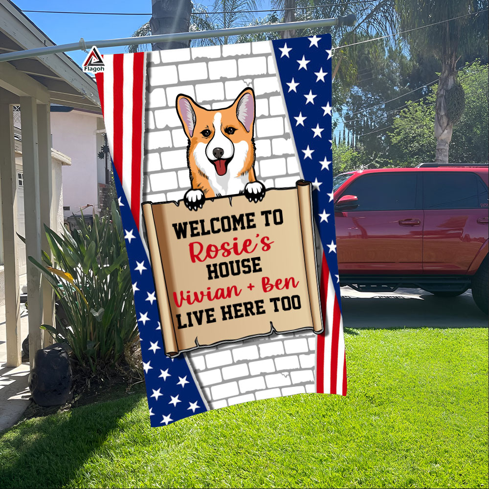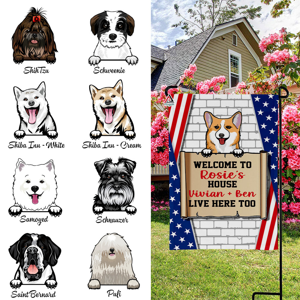 Welcome To The Dog House, Patriotic Custom Flags For Pet Lovers, Personalized Dog Decorative Garden Flags